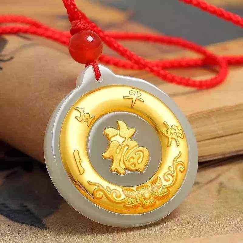 金鑲玉足金平安扣吊墜,送平安,健康常伴