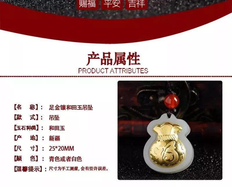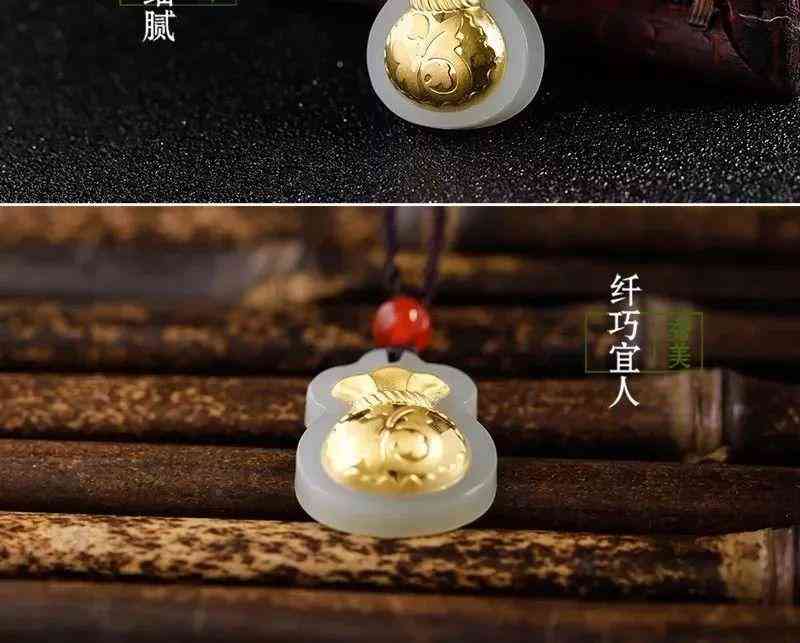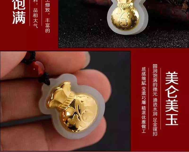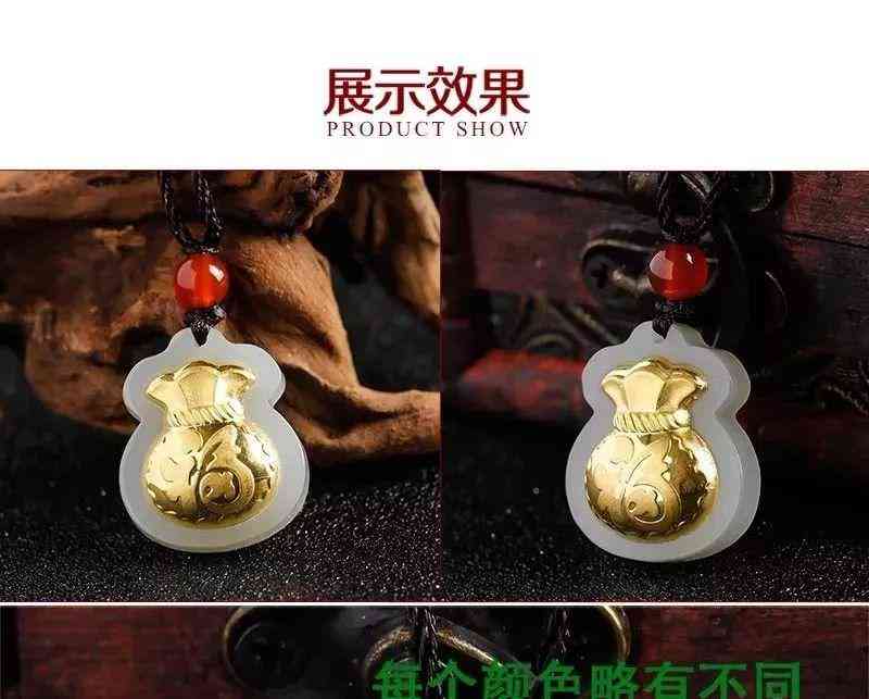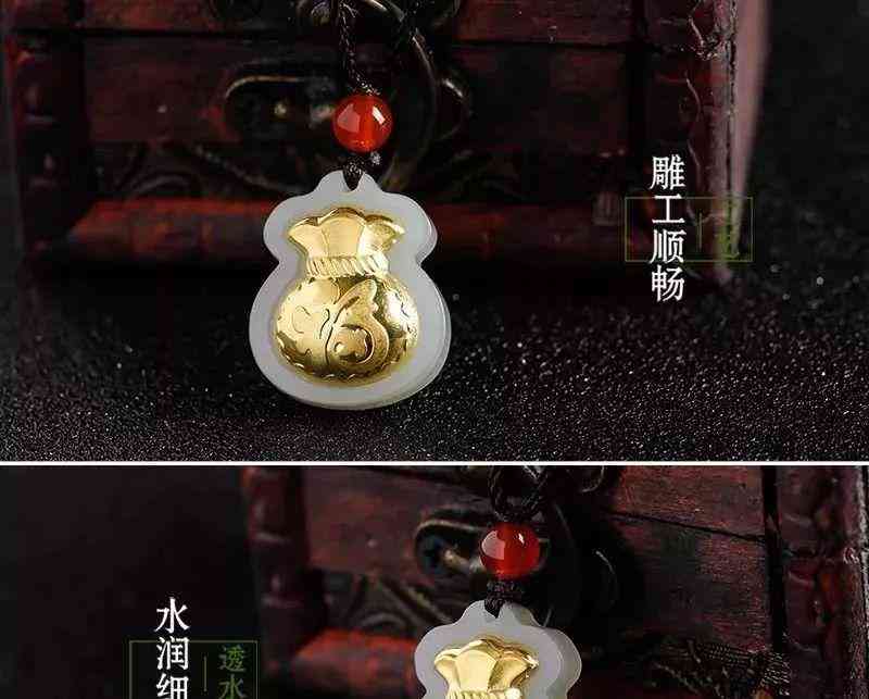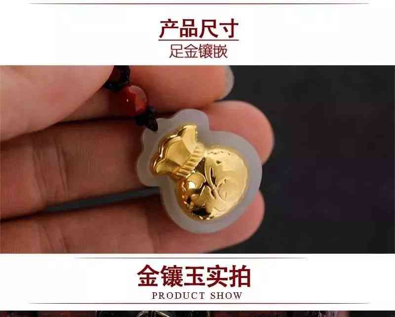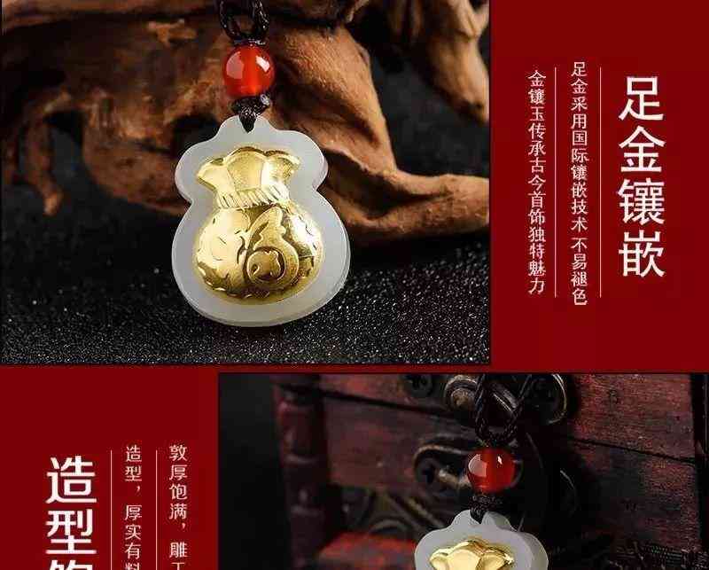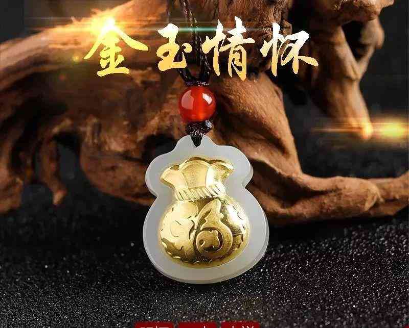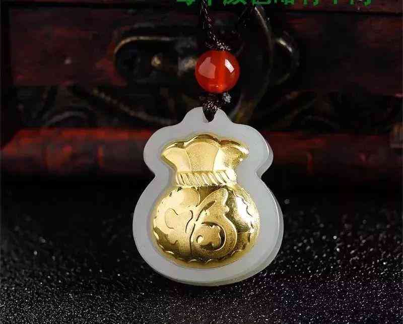 金鑲玉足金福袋吊墜,送福氣,榮華富貴