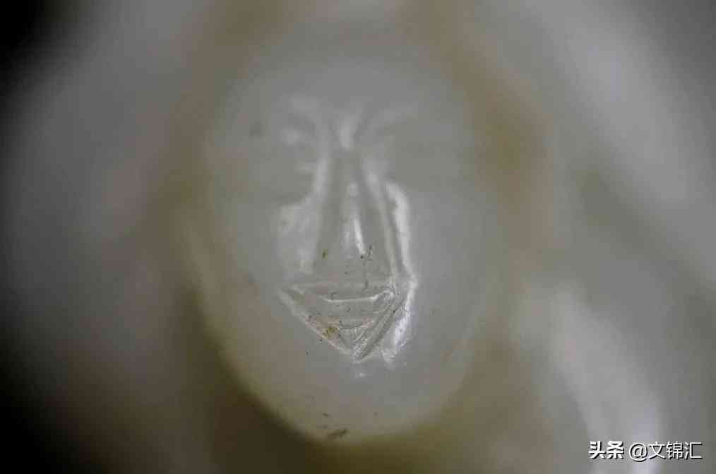 清代玉器人物臉部細圖。這種兩端細中間寬的陰線,從唐宋開始大量的應(yīng)用直到民國,這種陰線的特征是粗獷有力底部呈V字形,多是磨砂底,有的打磨較為光滑,寥寥幾砣下去便將嘴的輪廓勾勒出來。