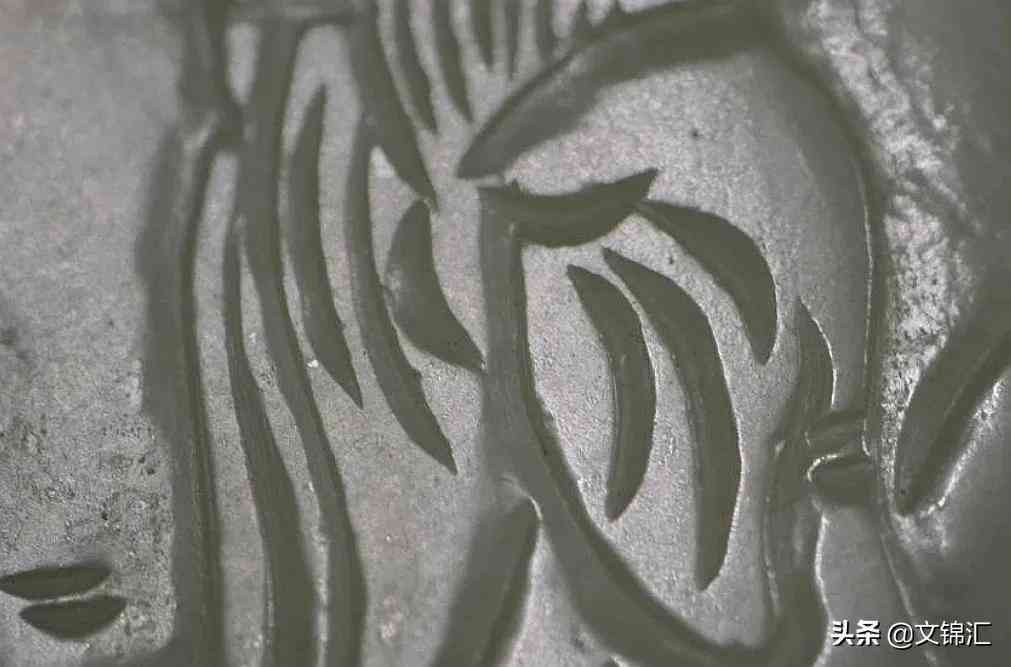 仿唐代陰刻線細部圖。上面的陰刻線是高仿,仔細觀察陰刻線整體生硬,尤其在砣痕的轉(zhuǎn)彎處沒有一氣呵成的流暢感,拘謹(jǐn)做作故意利用斷砣仿作古玉陰刻線的歧線,陰刻線底部也顯慵散沒有自如收砣留下的磨砂痕及V字形底。整體看缺乏一種靈動的藝術(shù)線條和氣息。
