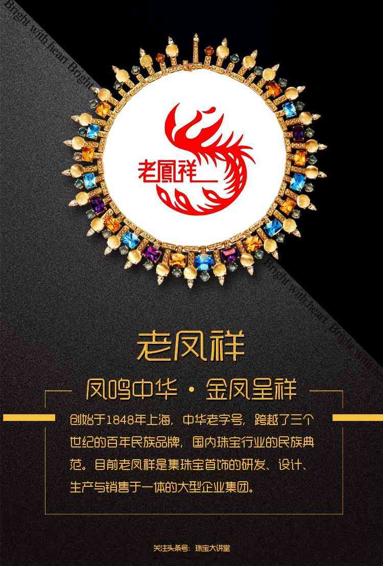 創(chuàng)始于1848年上海,中華老字號,跨越了三個世紀(jì)的百年民族品牌,國內(nèi)珠寶行業(yè)的民族典范。目前老鳳祥是集珠寶首飾的研發(fā)、設(shè)計、生產(chǎn)與銷售于一體的大型企業(yè)集團(tuán)。