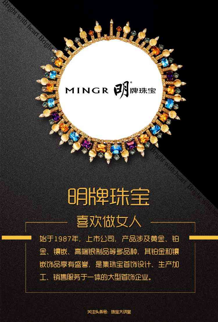 始于1987年,上市公司,產(chǎn)品涉及黃金、鉑金、鑲嵌、高端銀制品等多品種,其鉑金和鑲嵌飾品享有盛譽(yù),是集珠寶首飾設(shè)計、生產(chǎn)加工、銷售服務(wù)于一體的大型首飾企業(yè)。