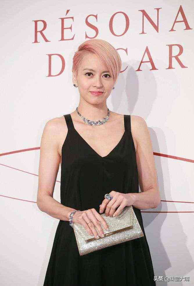 黑色背帶低V連衣裙讓梁詠琪看起來(lái)很優(yōu)雅,不過(guò)這一身衣服怎么都靚不過(guò)她身上這一套價(jià)值千萬(wàn)的首飾了。戒指、手鐲、項(xiàng)鏈還有耳釘都是同一個(gè)系列出品,看上去獨(dú)具特色,而且雍容華貴。