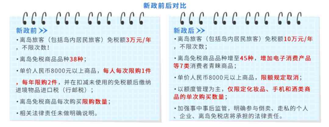 離島免稅新政前后對(duì)比(來(lái)源:海南省旅游和文化廣電體育廳官網(wǎng))