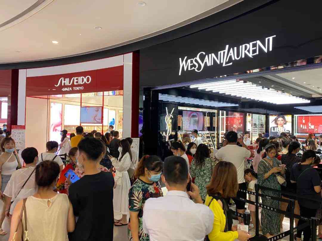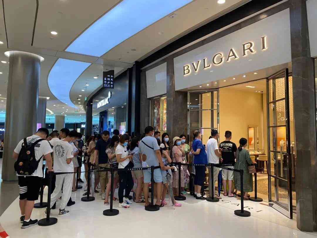 記者在海南三亞海棠灣的三亞國(guó)際免稅城看到,上午10時(shí)30分左右,該免稅城的兩棟樓內(nèi)已經(jīng)人頭攢動(dòng)。在B區(qū)的鐘表/珠寶/精品區(qū),一些熱門(mén)品牌如蒂芙尼(Tiffany)、寶格麗(Bvlgari)、普拉達(dá)(Prada)等已經(jīng)開(kāi)始排隊(duì);而在屬于國(guó)際精品/美容及個(gè)人護(hù)理的A區(qū),則已經(jīng)人聲鼎沸。