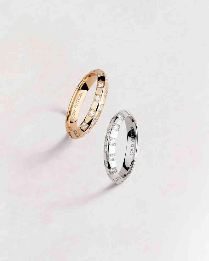 戒指的靈感來自LV著名的“棋盤格”,作為LV另一大標(biāo)識,和Monogram的經(jīng)典程度不相上下,同樣由喬治·威登一手打造,瞬間將品牌辨識度拉滿。