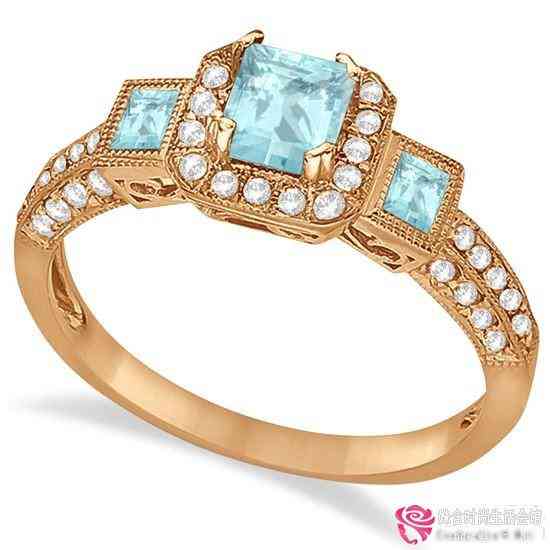 玫瑰金綠松石海藍(lán)寶石鉆石戒指