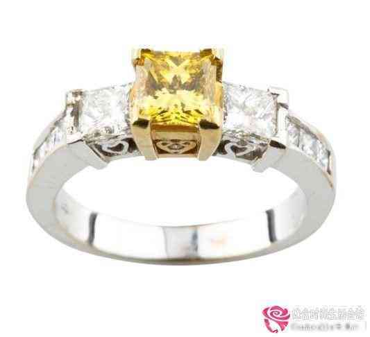 黃色鉆石適合白金。這個訂婚戒指是一個適合金色的手鏈和白皙的皮膚女孩佩戴。