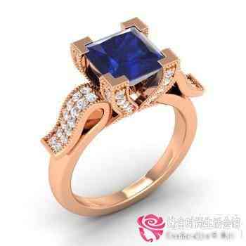 玫瑰金藍(lán)色藍(lán)寶石訂婚戒指