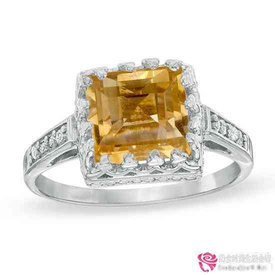 白金黃水晶訂婚戒指Zales.com