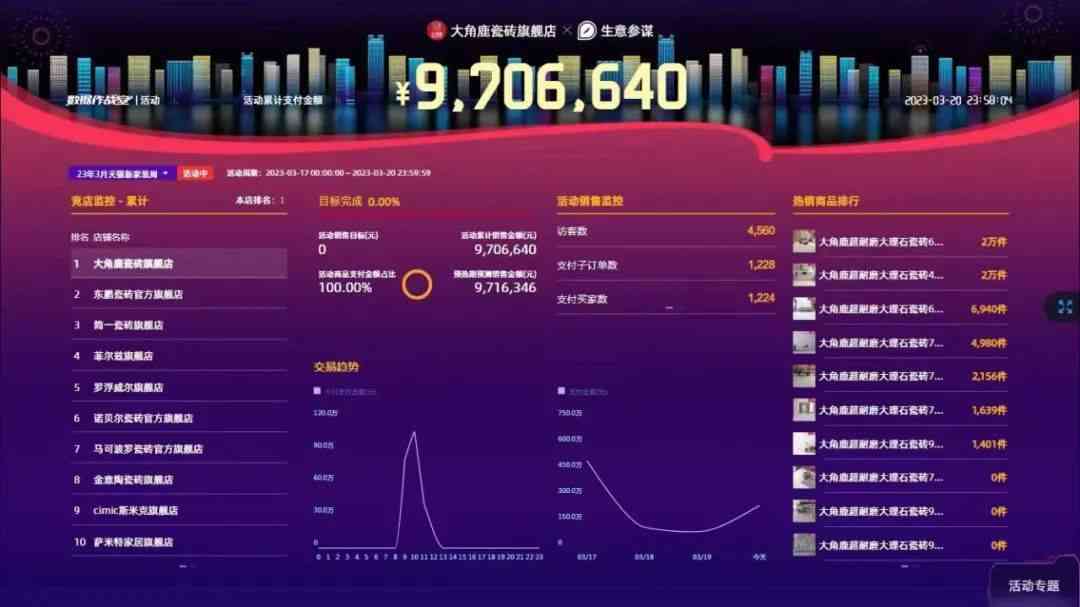 緊接著2022年,大角鹿挺進“天貓618”、“天貓雙11”雙榜單,分別斬獲“瓷磚行業(yè)銷量”,以及大理石瓷磚品牌“全網(wǎng)銷量”。