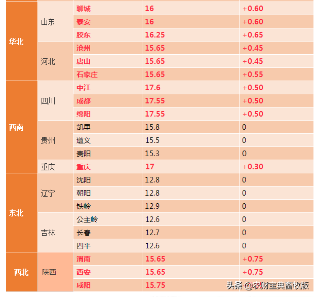 溫馨提示:綠色表示比前一天價格低↓,紅色表示比前一天價格高↑,黑色的則表示不變。以下數(shù)據(jù)僅供參考!
