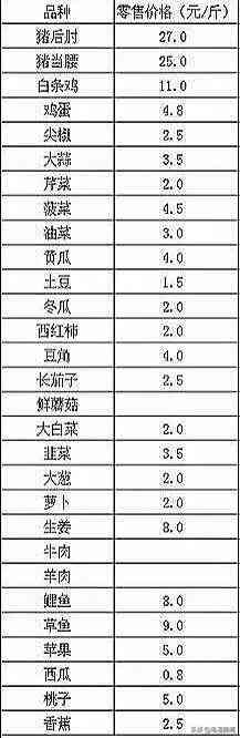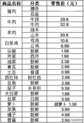 (數(shù)據(jù)來源:烏海市部分生鮮超市,以上價格僅供參考,具體價格以實際為準)