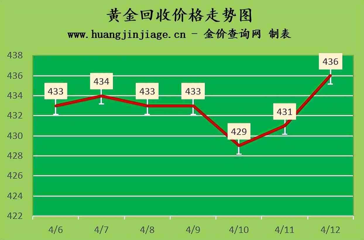 黃金回收價(jià)格436元/克,鉑金回收價(jià)格193元/克,鈀金回收價(jià)格298元/克,18K金回收價(jià)格312元/克,銀條回收價(jià)格4.2元/克。(黃金行情是波動(dòng)的,回收金價(jià)沒有固定標(biāo)準(zhǔn)。)