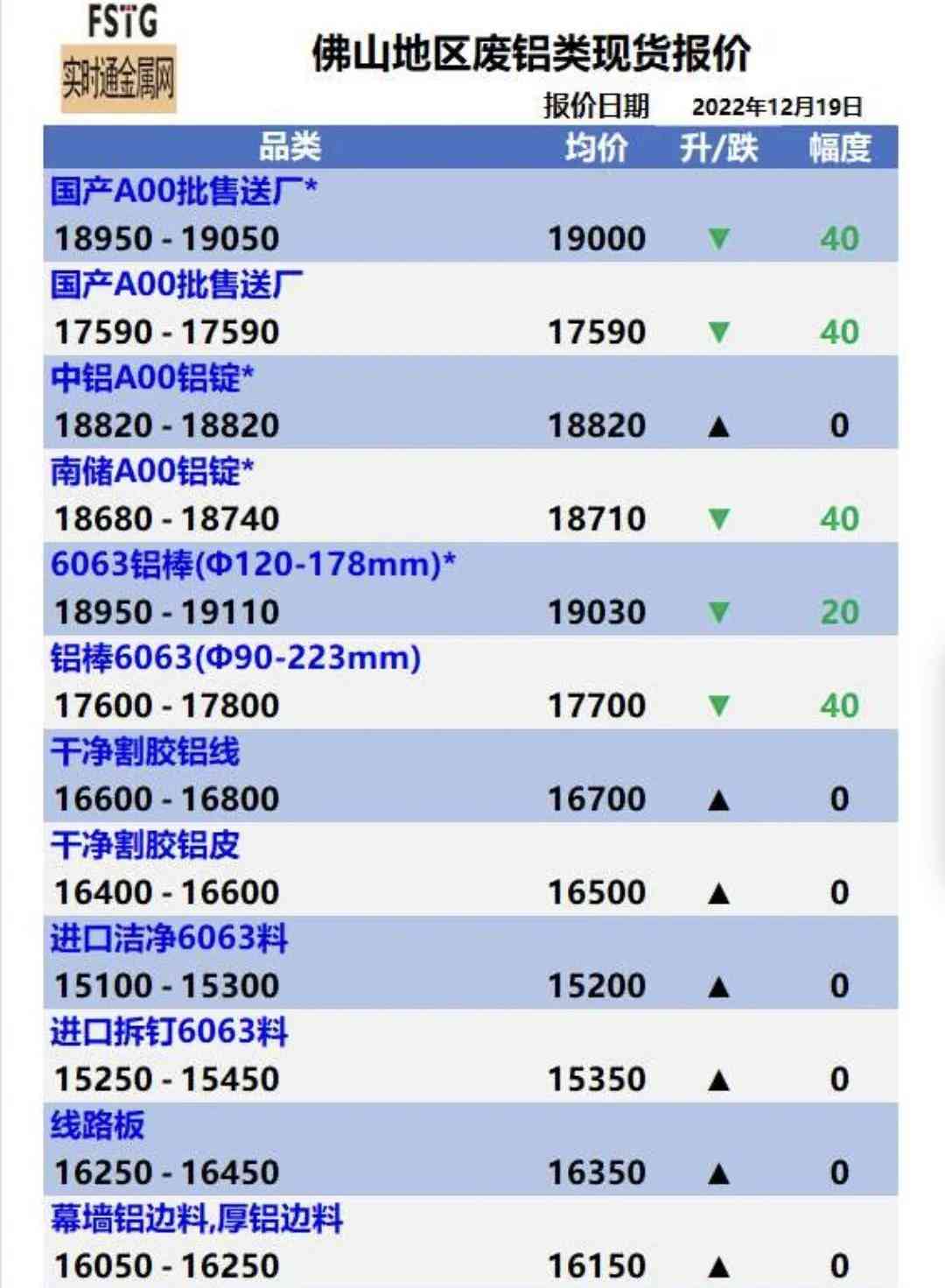 導(dǎo)讀: 佛山地區(qū)12月19日金屬報價佛山廢銅佛山地區(qū)廢銅類報價佛山廢鋁光亮鋁線16300.鋼芯鋁線16000(20米以上、無...