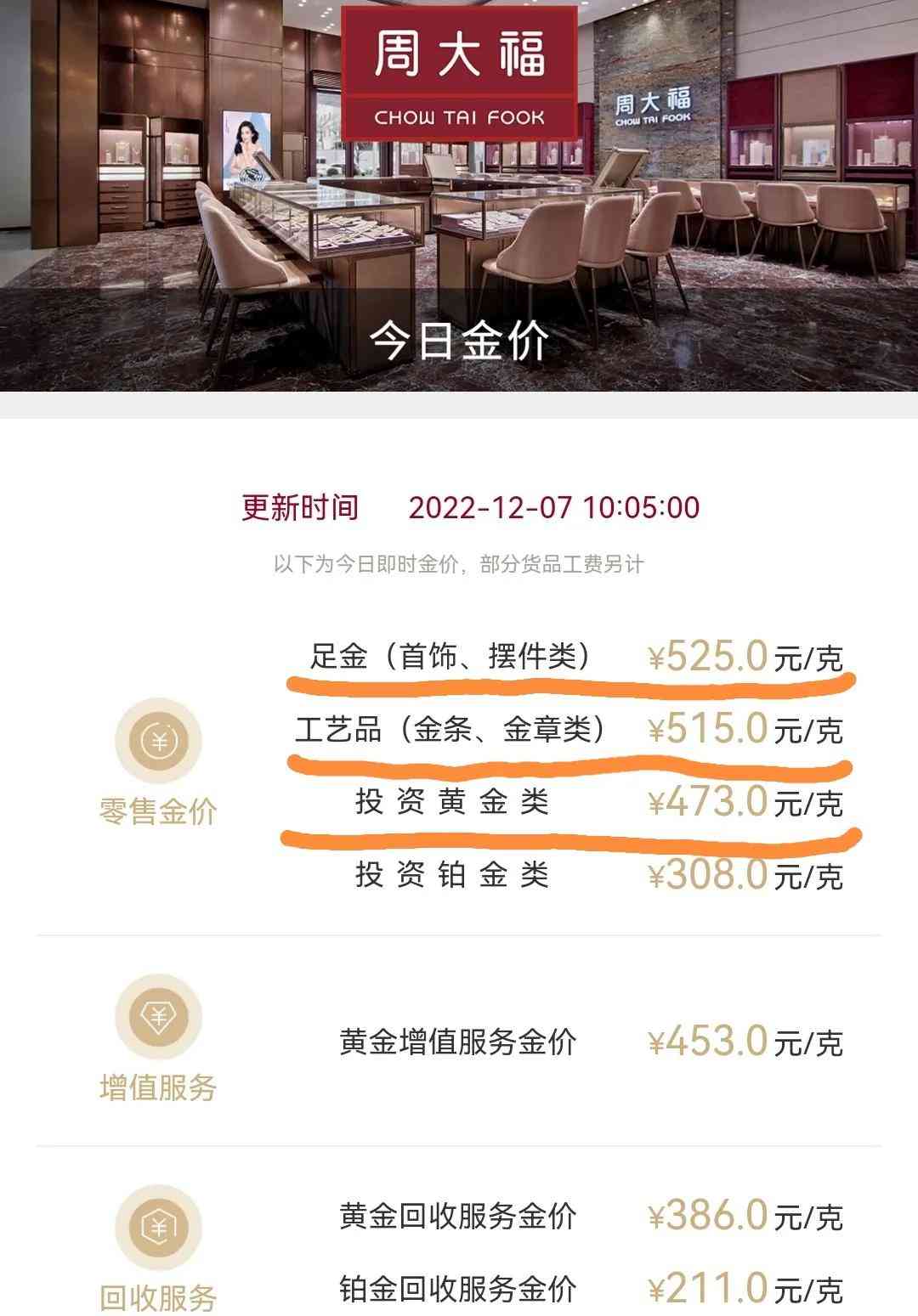 周大福今日首飾金價(jià) 金條金價(jià)
