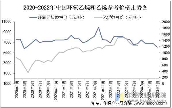 2020-2022年中國環(huán)氧乙烷和乙烯參考價格走勢圖