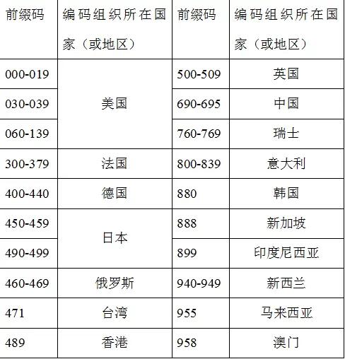 以下提供部分國家的條形碼