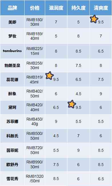 美即從質地上就是最為清爽的一款,果不其然,在測試中手背上殘留的小亮片也最少,所以是清爽度的名。而醉象只比美即多那么一丟丟的小亮片,只能屈居老二了。歐舒丹和茵菲妮的亮片分布都非常松散,實在難以分出伯仲,并列成為第三名吧!