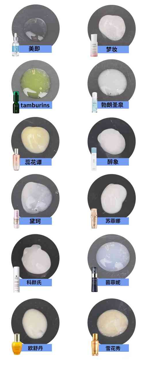 求真君將12款精華涂抹在PCV紙上,觀察其顏色和質地,結果發(fā)現不同產品間的質地差異明顯。