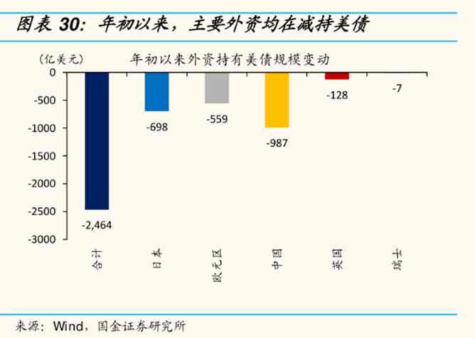 自2022年初以來,全球各國都在大規(guī)模的減持美債,累計已經(jīng)減持了2464億美元的美債。即使是美債的堅定擁護者——日本,也在2022年減持了698億美元的美債。