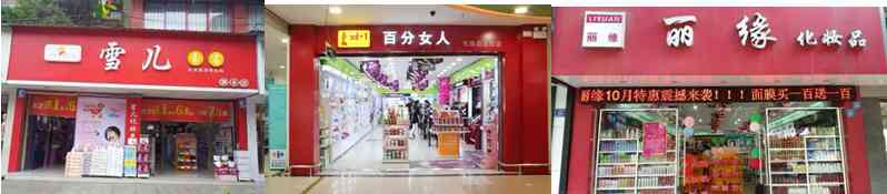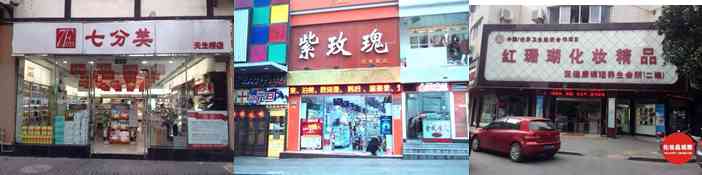 比如以下這些店,雖然是美妝店,卻很難讓人一眼看出來,或被誤認(rèn)為是便利店、小賣店、批發(fā)部,那就悲劇了。