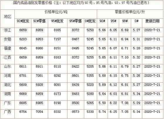 ?廣東深圳:92號汽油零售價(jià)4.80元,95號汽油零售價(jià)5.98元,浙江杭州:92號汽油零售價(jià)5.07元,95號汽油零售價(jià)5.66元,福建廈門:92號汽油零售價(jià)4.87元,95號汽油零售價(jià)5.26元,安徽合肥:92號汽油零售價(jià)5.18元,95號汽油零售價(jià)5.39元,江西資溪:92號汽油零售價(jià)5.04元,95號汽油零售價(jià)5.69元。
