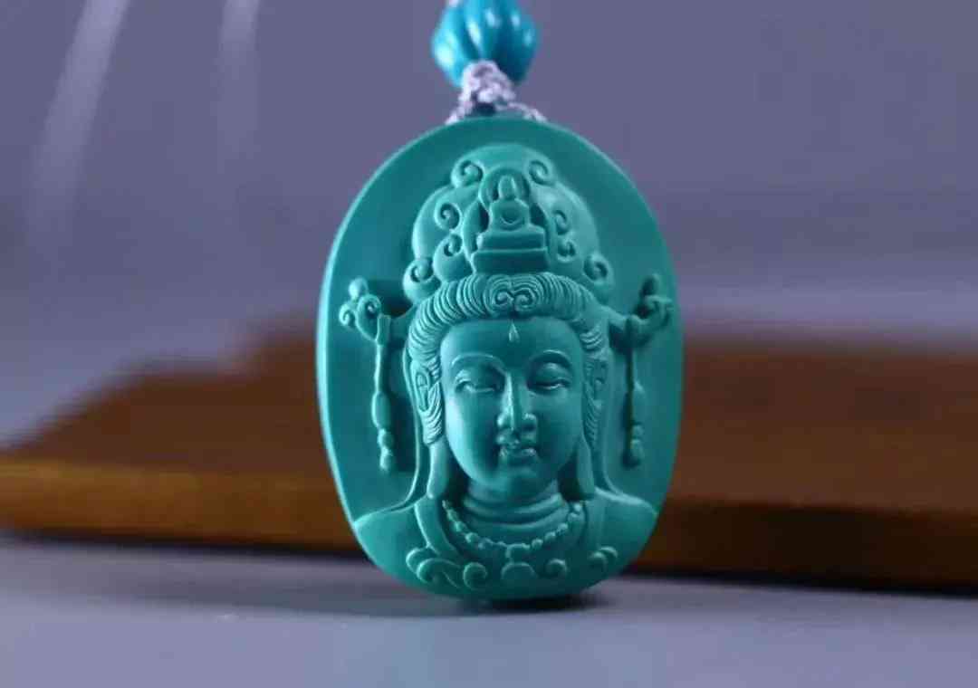 綠松的這一種特有光澤,甚至可以用來鑒定真假,天然高瓷高藍(lán)的綠松石在拋光后,呈柔和的蠟狀光澤和半玻璃光澤。