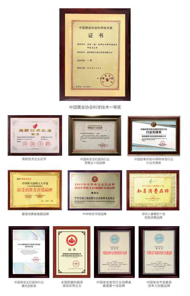 賽菲爾珠寶獲獎(jiǎng)榮譽(yù)展示(部分)