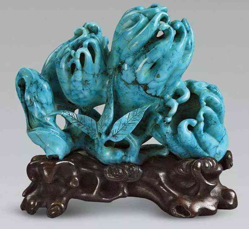 作為中國的四大名玉之一,綠松石主要產于湖北,古代也稱“襄陽甸子”,新疆也有綠松石出品,同時伊朗、埃及、美國、俄羅斯、澳大利亞均有出產。綠松石的基本顏色為天藍或者綠色 ,主要是其中含有水化的銅鋁磷酸鹽,玻璃或者油脂光澤,不透明,質地還算細膩,韌性差,有藍色、淺藍色、藍綠色、綠色、深藍色等幾種顏色。在它的主體上綠色或者藍色的基礎上,可以看見不規(guī)則的白色條紋或者斑塊,由石英白色礦物成份組成,當然了,大家看見的黑色紋理或者黑塊,這是由鐵礦成份組成。