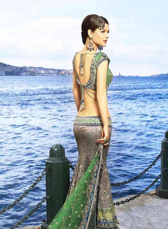 刺繡的淡綠色邊幅配bulingbuling的華貴短衫,凸顯精致小蠻腰的婀娜和曲線的完美,這是高種姓的特權(quán),要是普通人早被貶的一文不值,而妮哈·達(dá)爾維卻可以如精靈一般的帶著各種華貴的印度配飾,金屬質(zhì)感的高級灰和身材默契結(jié)合,塑造完美的藝術(shù)形象。