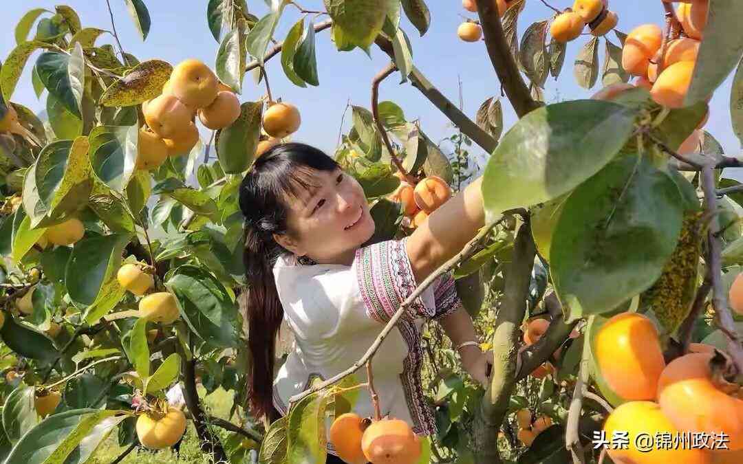 秋子在果園采摘柿子。受訪者供圖