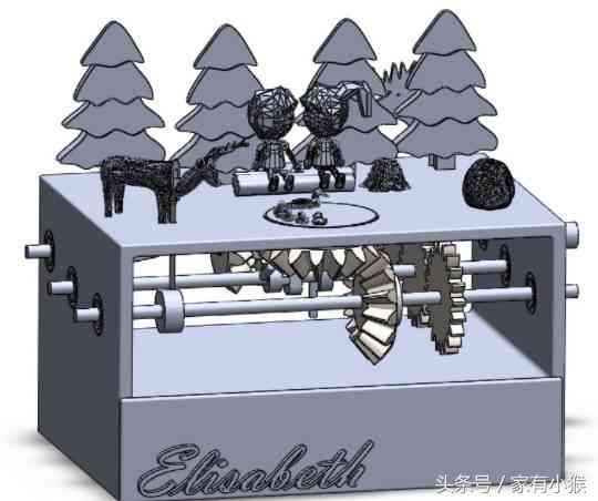 最后進行一些小的調(diào)整,用一些潤滑劑似的軸承在凸輪中間可以很好的滑動,然后成品就是這樣了,里面有移動的太陽、會低頭的馴鹿,還有很多可愛的小細節(jié)……