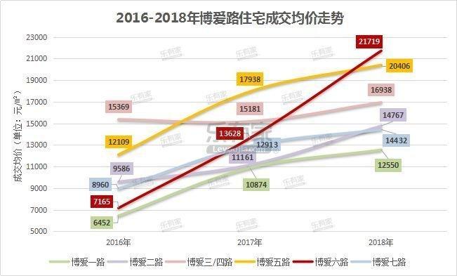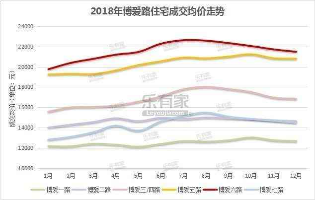 樂有家研究中心數(shù)據(jù)顯示,從2018年博愛路各路段二手住宅成交均價走勢來看,博愛六路房價最高,成交均價約21553元/㎡;博愛五路緊隨其后,成交均價約20315元/㎡;前半年博愛二路房價略高于博愛七路,后半年兩路段房價幾乎持平;成交均價最低路段為博愛一路,約12506元/㎡。