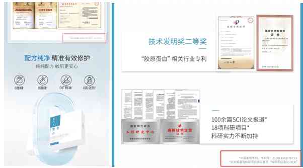 圖片來(lái)源:巨子生物某線上旗艦店及專利審查信息系統(tǒng)截圖