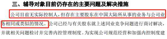 江蘇證監(jiān)局網(wǎng)站2021年8月19日披露了一則恒美光電輔導(dǎo)工作進展報告,保薦機構(gòu)海通證券在報告中指出目前公司存在的主要問題是,“公司目前無實際控制人,但存在主要股東在中國大陸所從事的業(yè)務(wù)與公司業(yè)務(wù)相同或類似的情況”。