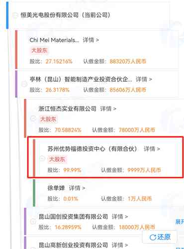 這邊,亭林昆山為恒美光電第二大股東,其持股比例僅低于奇美新材料不到1個百分點。股權(quán)穿透后,亭林昆山實控人為優(yōu)勢福德。