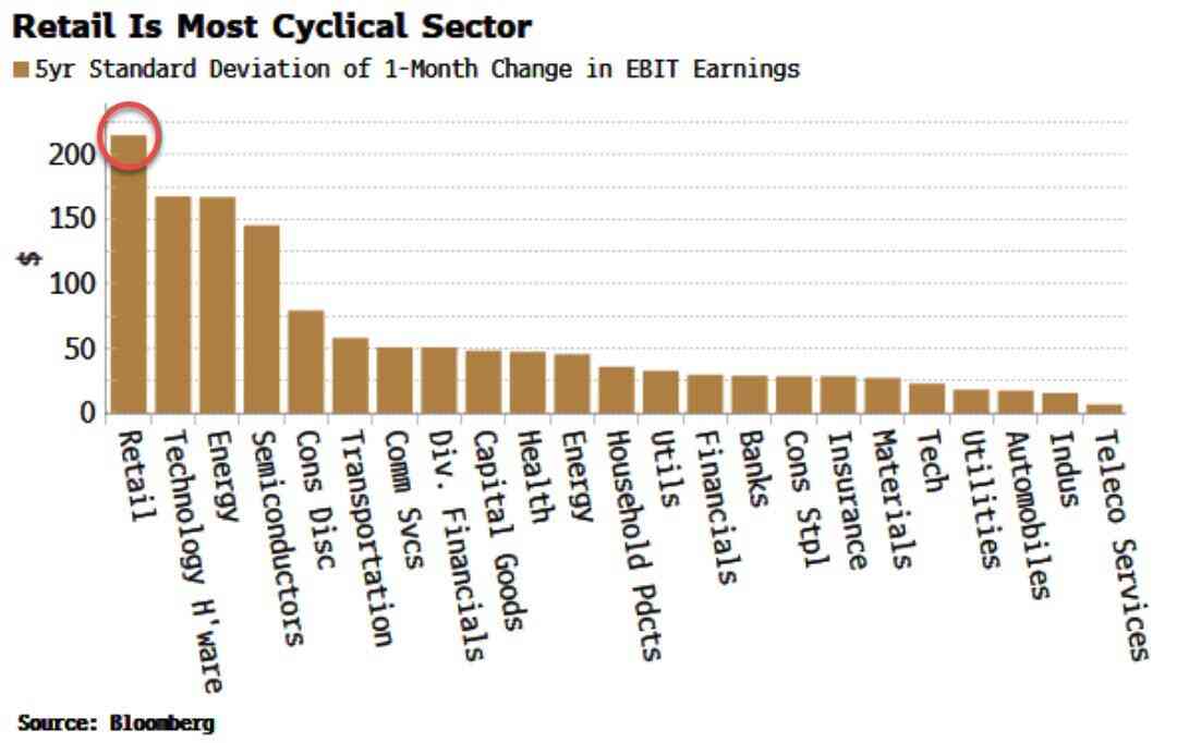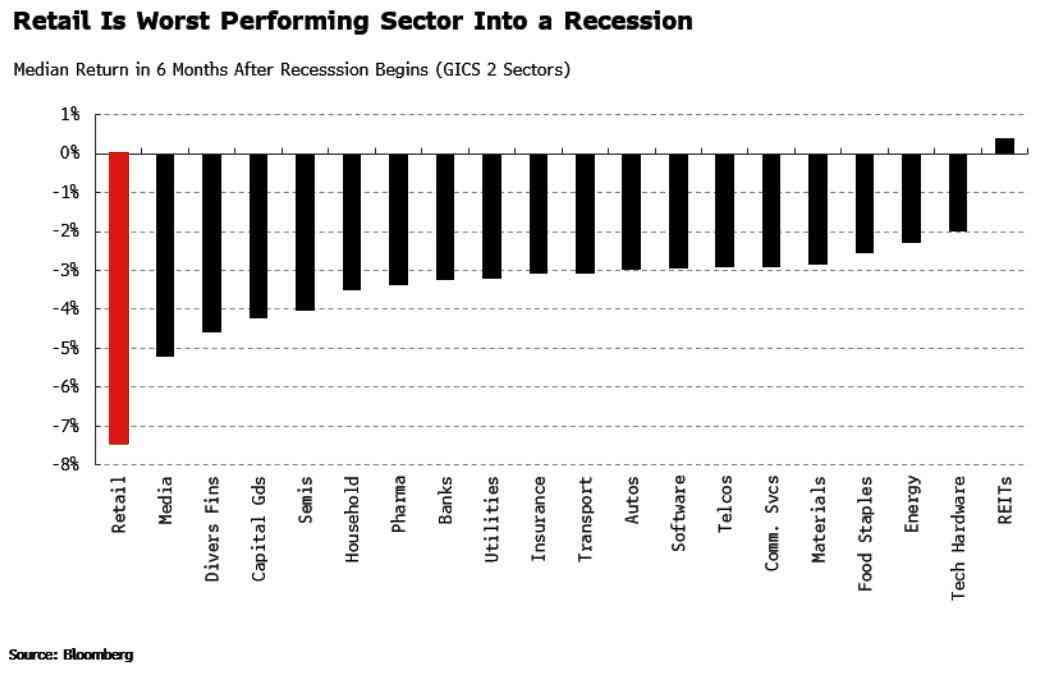 而可以肯定的是,在任何一次衰退中,零售業(yè)都注定是表現(xiàn)最不佳的行業(yè)之一。