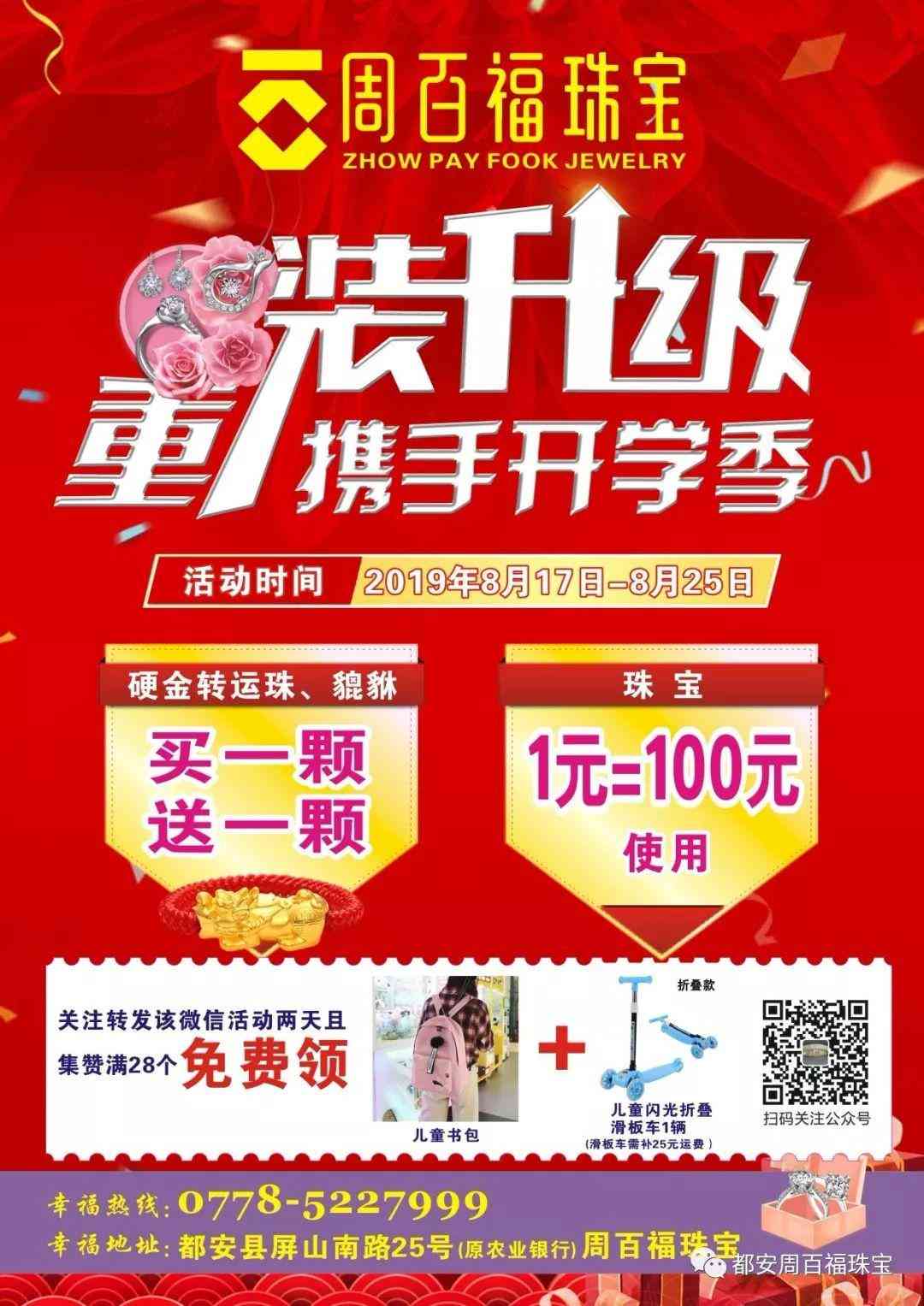 導(dǎo)讀: ?8·17~8·25重裝升級 瘋狂折扣周百福歡迎您來到珠寶之家珠寶之家開啟特價新狂潮——全城嗨森購【周百?!ぶ閷殹恐馨俑?..