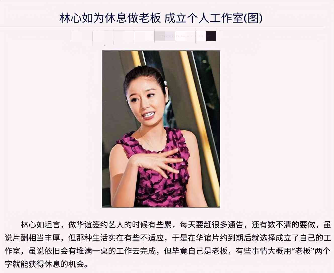 走紅后的林心如深知依附于資本,不如成為資本,于是不再滿足于打工人身份的她,在2009年選擇成立個(gè)人工作室,自己當(dāng)起了老板。
