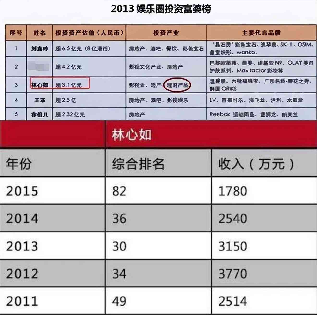 早在2013年,林心如就以3.1億的身家,成功入選娛樂(lè)圈投資富婆榜,保守估計(jì)當(dāng)時(shí)她的資產(chǎn)就已經(jīng)超過(guò)10億。