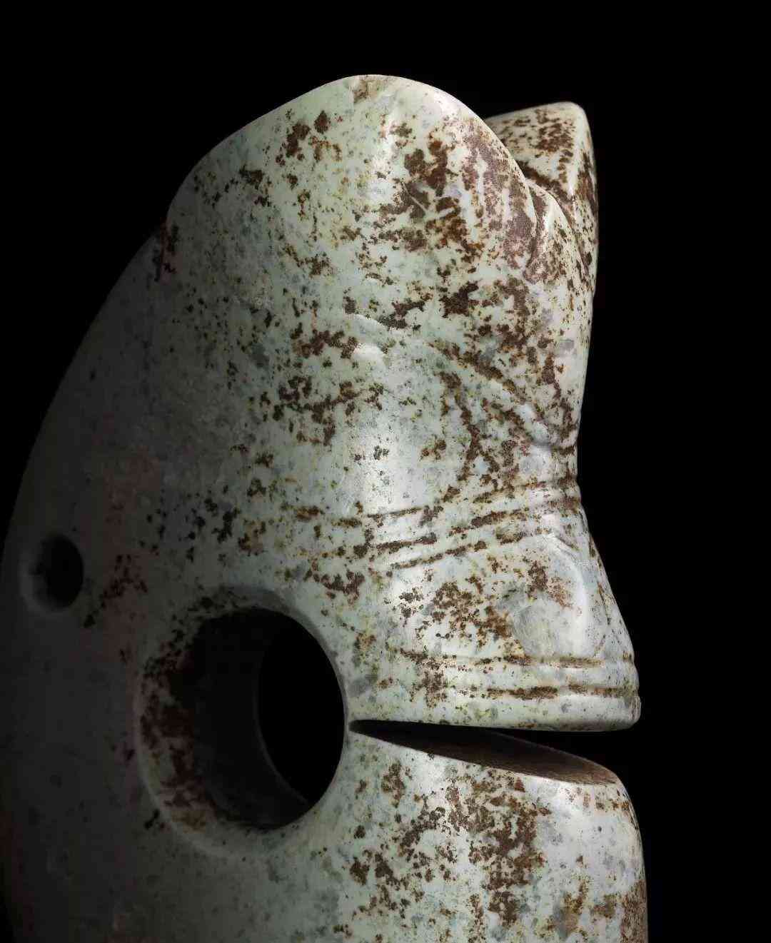 紅山文化 青玉帶齒動(dòng)物面飾(30-50萬)