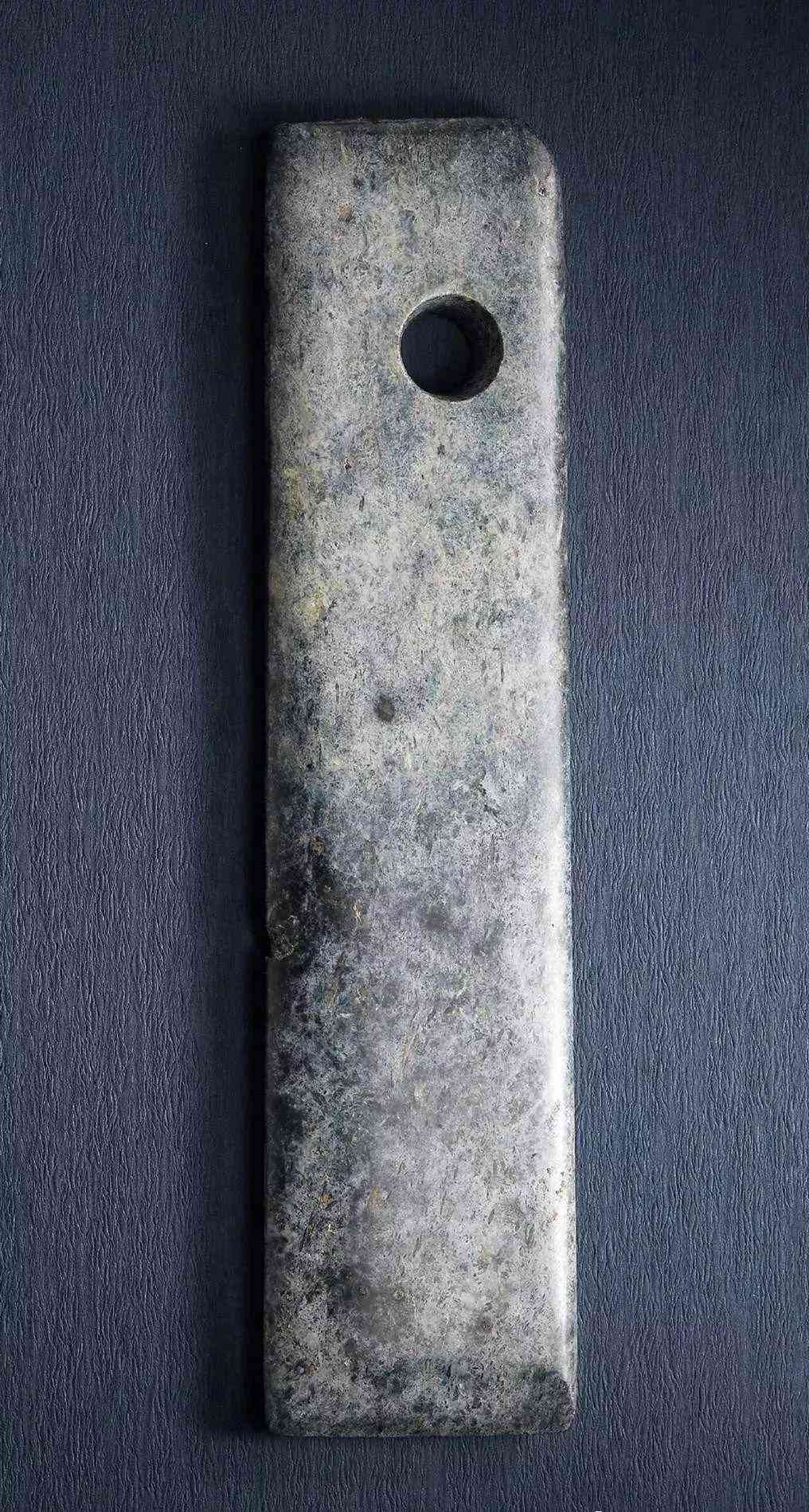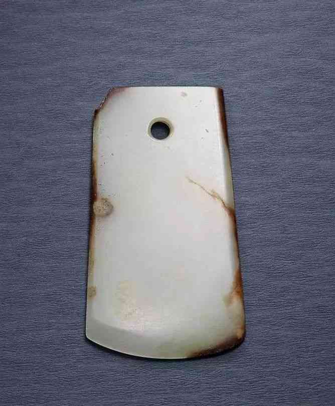 此件玉鉞,有可能是齊家文化玉件舊料改制,并經(jīng)盤玩成熟坑。