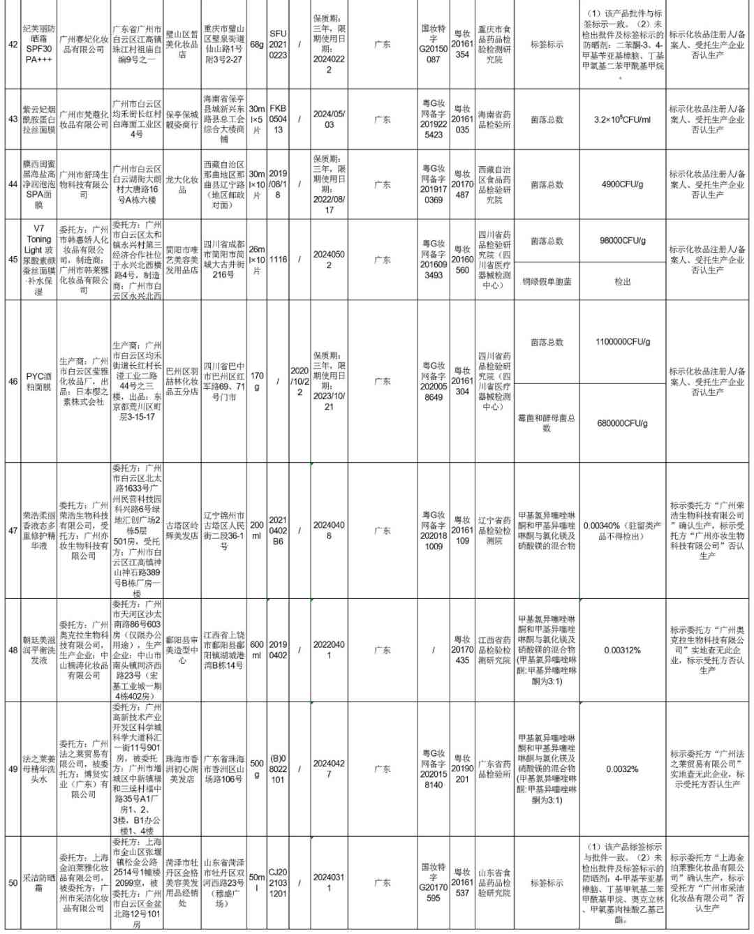 在國家藥監(jiān)局的通告中,50批次化妝品不合格,其中主要違規(guī)問題包括所含成分超標(biāo)、產(chǎn)品標(biāo)簽標(biāo)示一致等等。