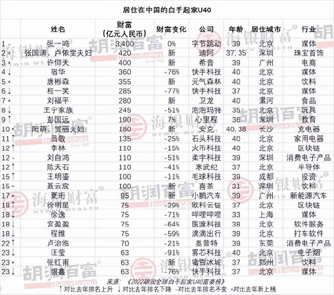 據(jù)《2022胡潤(rùn)全球白手起家U40富豪榜》,張國(guó)濤、盧依雯夫婦憑借420億身家,位列居住在中國(guó)白手起家富豪榜的第二位。