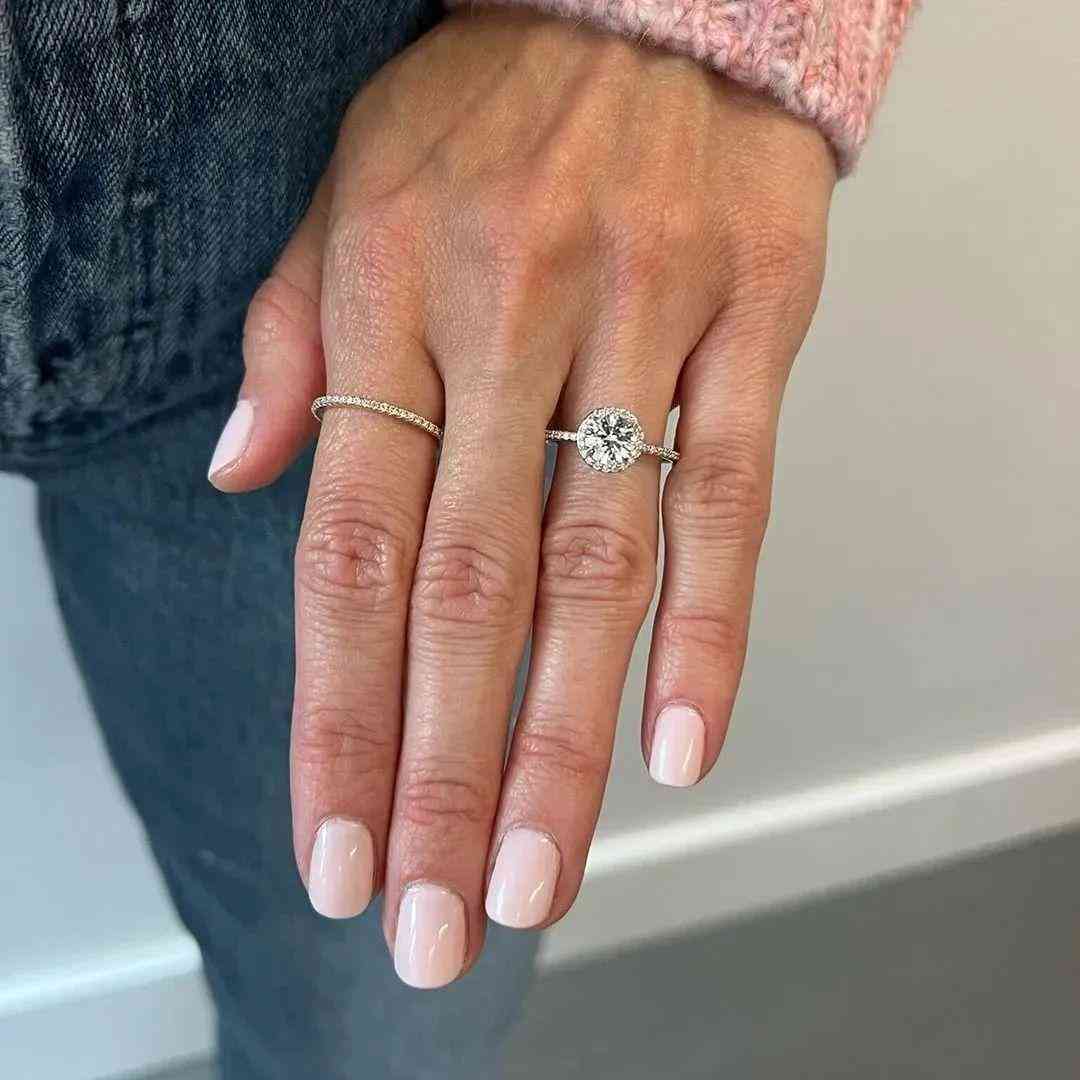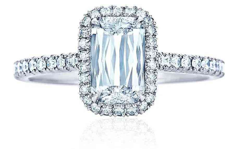 二是鑲嵌方式,經(jīng)典的光環(huán)(Halo)設(shè)計(jì)是顯大的好選擇,就等于給你的主石鑲了一個(gè)鉆石邊,當(dāng)然猛地看上去大了一整圈。