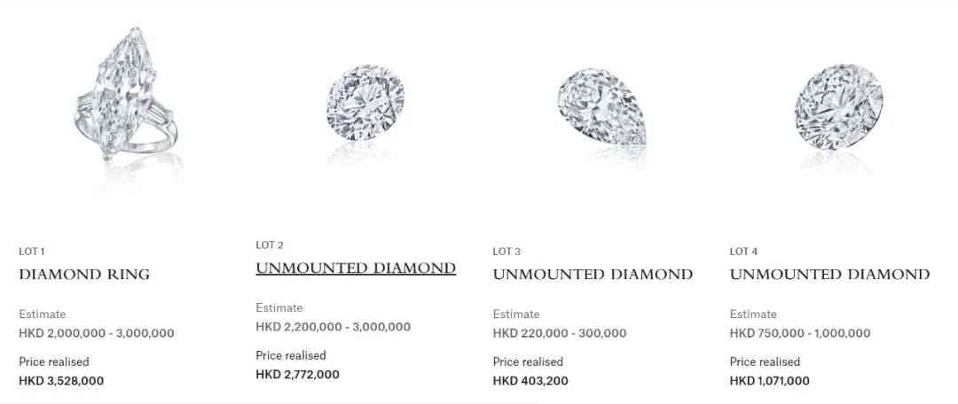 另一個(gè)選擇是拍賣行,確實(shí)是尋找收藏級(jí)別鉆石的好地方,高品質(zhì)的裸鉆和鉆戒都選擇多多,可以重點(diǎn)關(guān)注一下線上拍賣, 3-5 克拉, 8-10 克拉都是這里的??汀6宜偷脚馁u的鉆石大部分都自帶證書, D 色 VVS1 都是基操,閉著眼睛挑也不會(huì)錯(cuò),只需要貼合自己的預(yù)算即可。