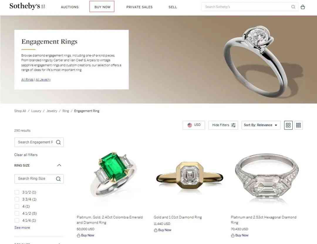 蘇富比 Buy Now 版塊的鉆石戒指
