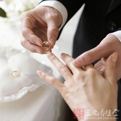 5、已婚夫婦向世人宣誓對婚姻愛情的堅守,男生戴在右手的無名指上,女生戴在左手的無名指上。