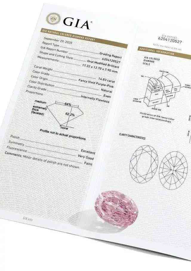 如果對(duì)顏色有更高要求,具有紫色伴色的粉鉆顏值更高。回顧這幾年拍賣(mài)場(chǎng)上的天價(jià)粉鉆,很多都是 Fancy Vivid Pink 艷彩粉色與紫色伴色的組合,尤其是在證書(shū)中明確標(biāo)注了“ Fancy Vivid Purplish Pink ”艷彩紫粉色更是堪稱粉鉆中的極品!